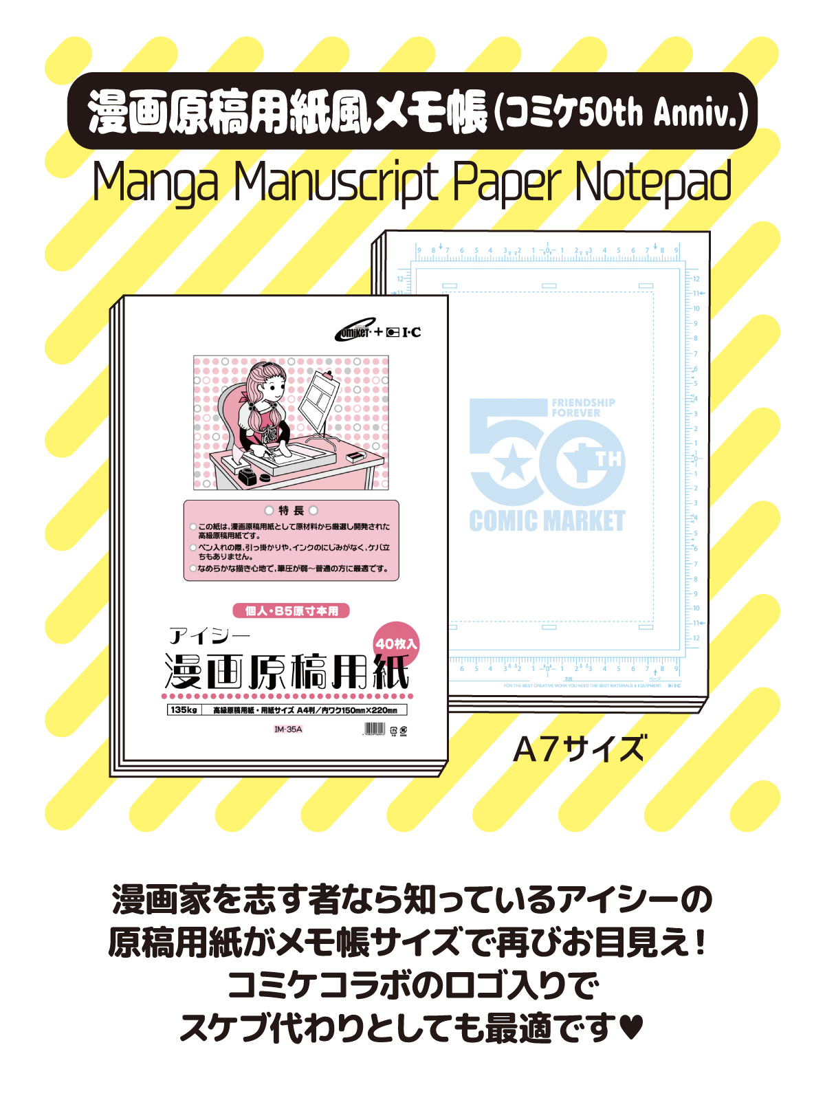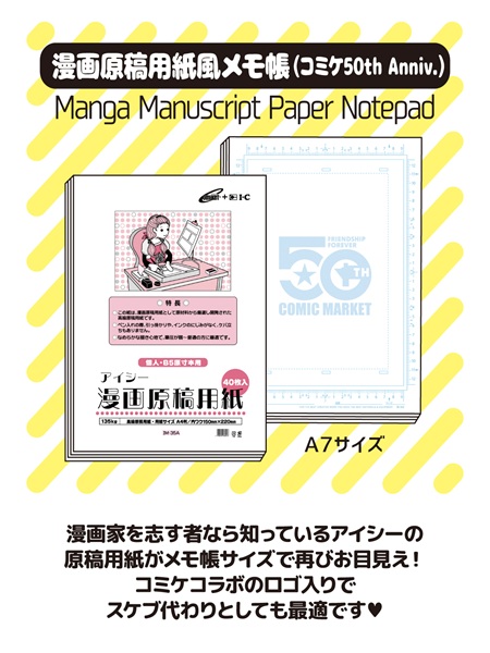 アイシーの漫画原稿用紙をモチーフとしたメモ帳が、コミケ50周年記念を機にコラボ版として登場しました!